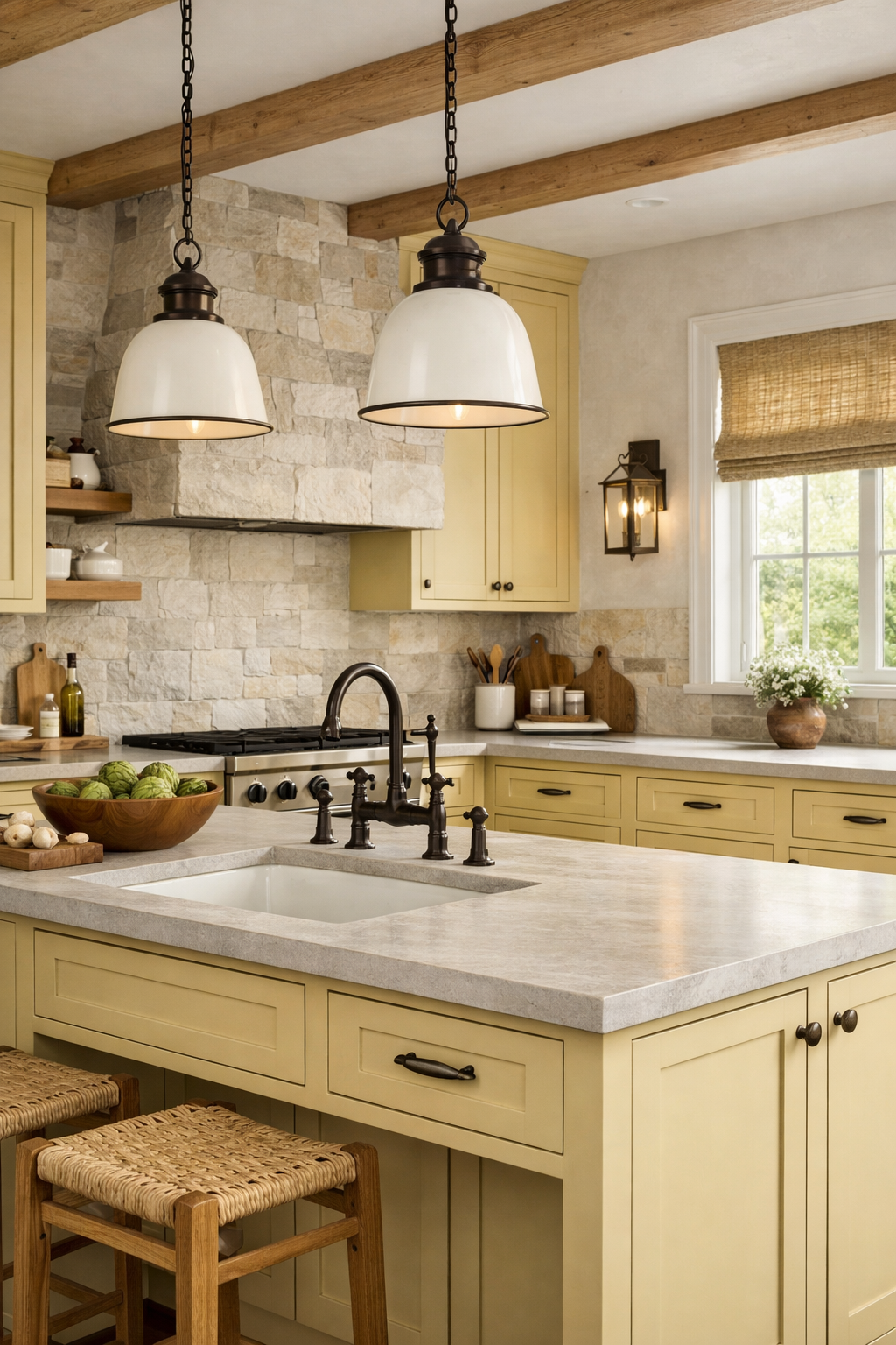 5. Soft Yellow with Honed Limestone